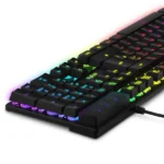 The ergonomic design includes comfortable low-profile keycaps, a stable construction, and a layout optimized for long gaming sessions. Its durable build ensures resistance to wear, making it suitable for heavy daily use.
