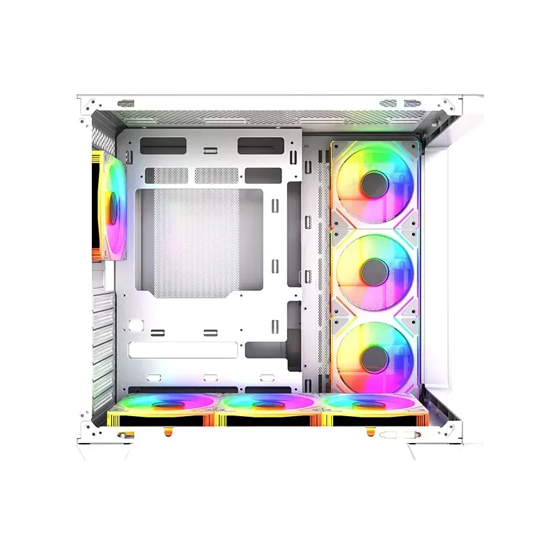 Built for performance, the P28511 WHITE ensures optimal cooling with pre-installed ARGB fans and extensive ventilation zones. The mesh front panel enhances airflow, keeping your hardware running at ideal temperatures during long gaming sessions.