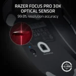Featuring the Razer Focus Pro 30K Optical Sensor , the DeathAdder V3 provides 99.8% resolution accuracy , ensuring flawless tracking across all surfaces, including glass.